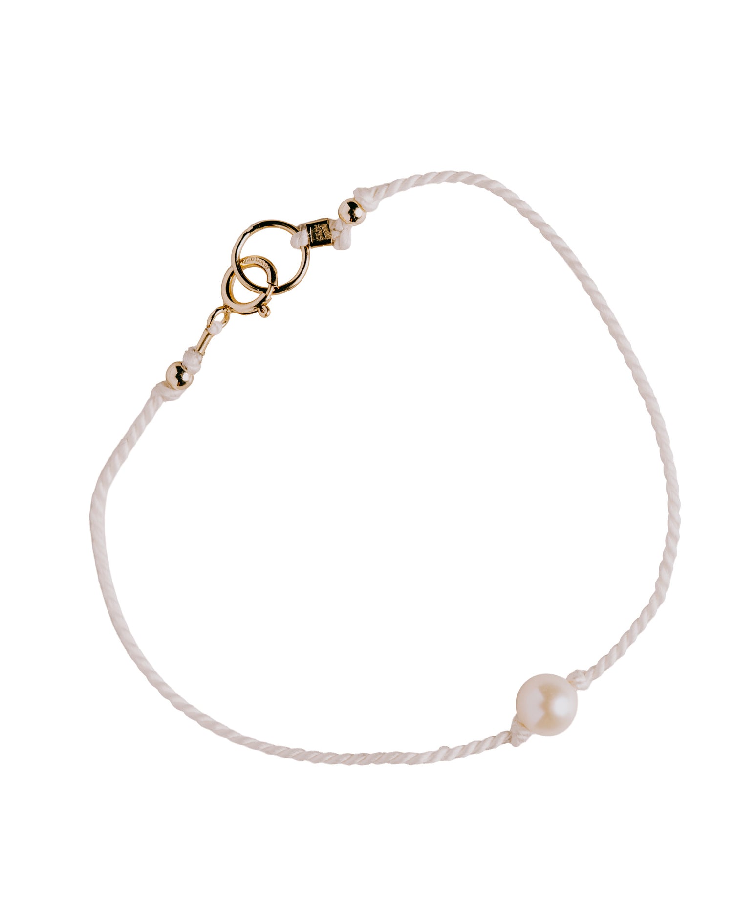 A simple request for a light, everyday bracelet. Sized to fit a small wrist, finished with gold filled details, and centred with a single white pearl. Minimal, clean, and made to blend effortlessly into an existing stack.