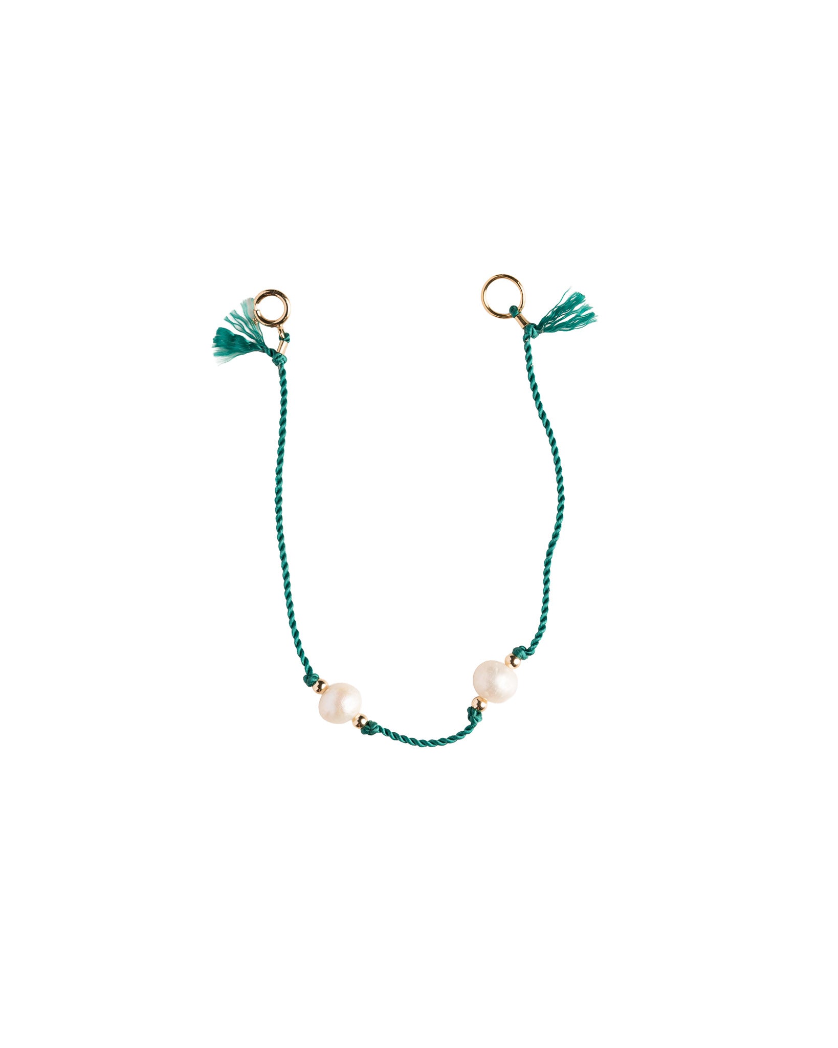 Freshwater Pearls, threaded and hand knotted on green cord with a 14k gold-filled bead and findings.
