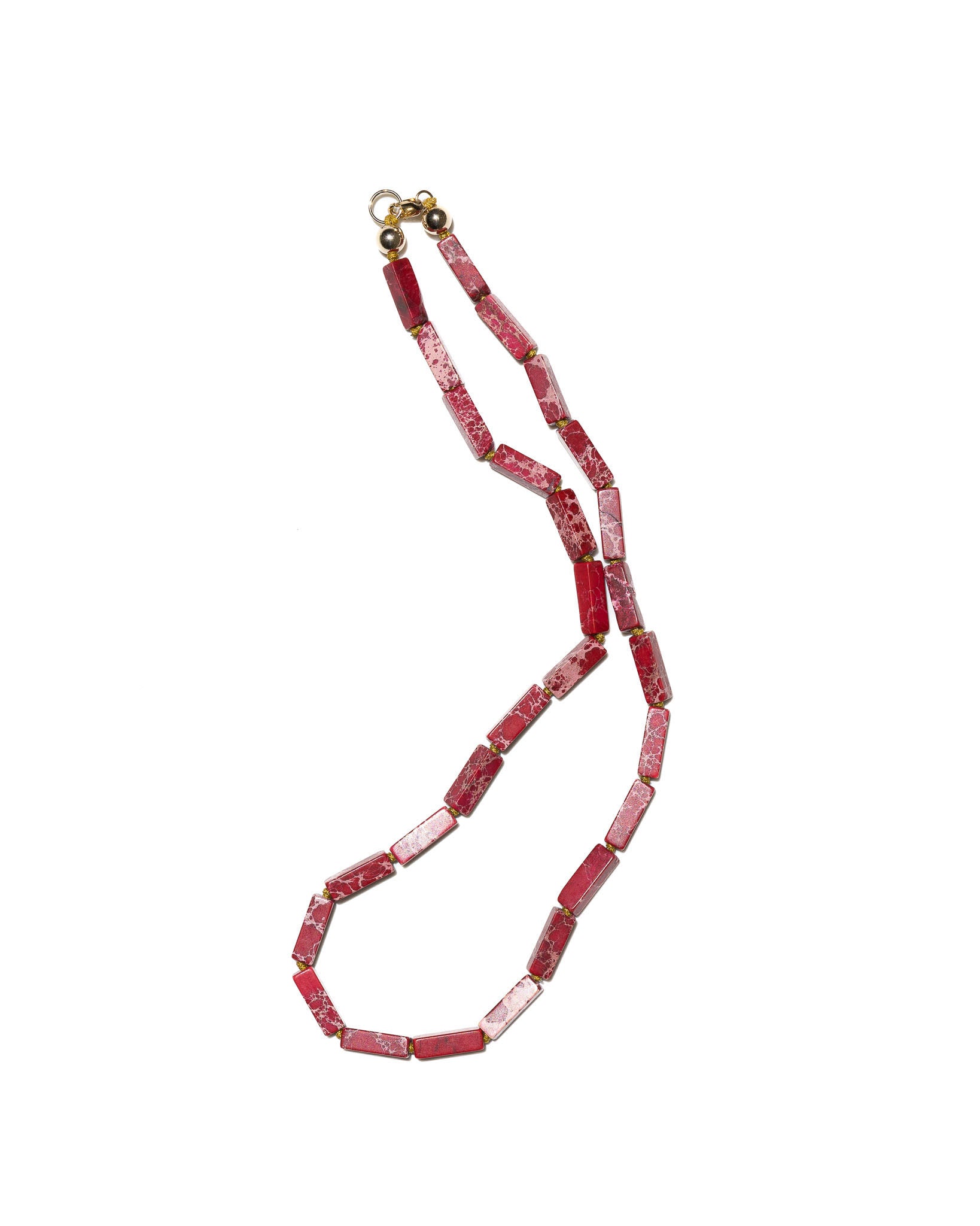 Red Sea Sediment Jasper Beads threaded and hand knotted on gold cord with 14k gold-filled findings and beads.